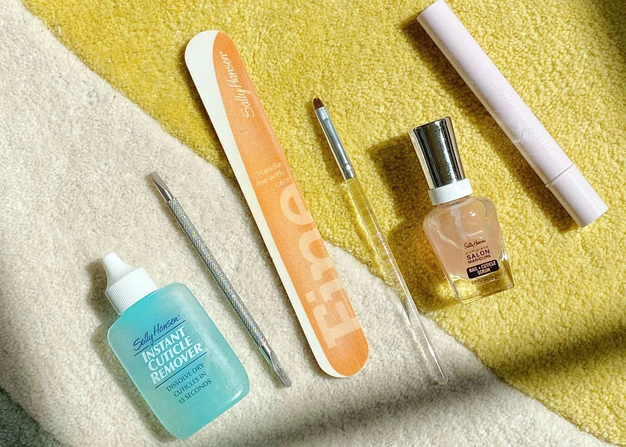 Cuticle maintenance time! I like to apply Sally Hansen Instant Cuticle Remover $5.98 for about a minute and let it do the hard work for me. This is an acid-rich gel that dissolves dead skin and further helps soften cuticles, making them easier to push back. For pushing them back I love the Tweezerman Pushy and Nail Cleaner $18.00 - it has one end for cuticle pushing and another with a sharper edge to clean up under the nail. I then trim any skin that’s loose with a cuticle nipper (also by Tweezerman).